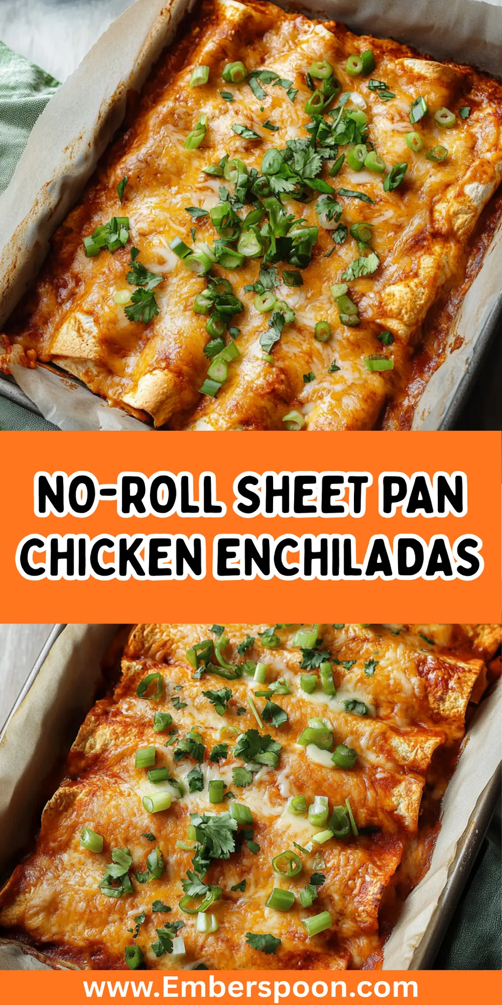 No-Roll Sheet Pan Chicken Enchiladas